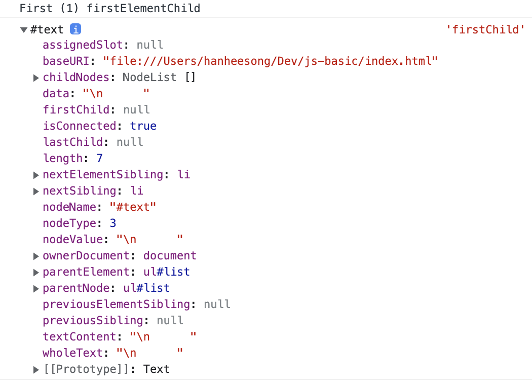 console.log(list.firstElementChild.textContent, 'firstElementChild');