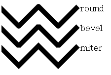 - bevel: 연결된 세그먼트의 끝점과 각 세그먼트의 개별 외부 직사각형 모서리 사이에 삼각형 영역을 채워줌.