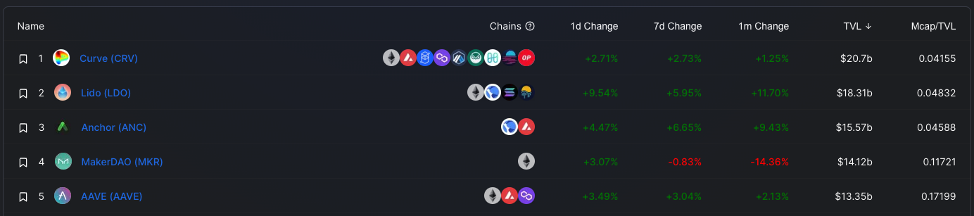 Defi Llama라는 사이트에 들어가보면 표 필드에 TVL이라는 표시가 보인다.