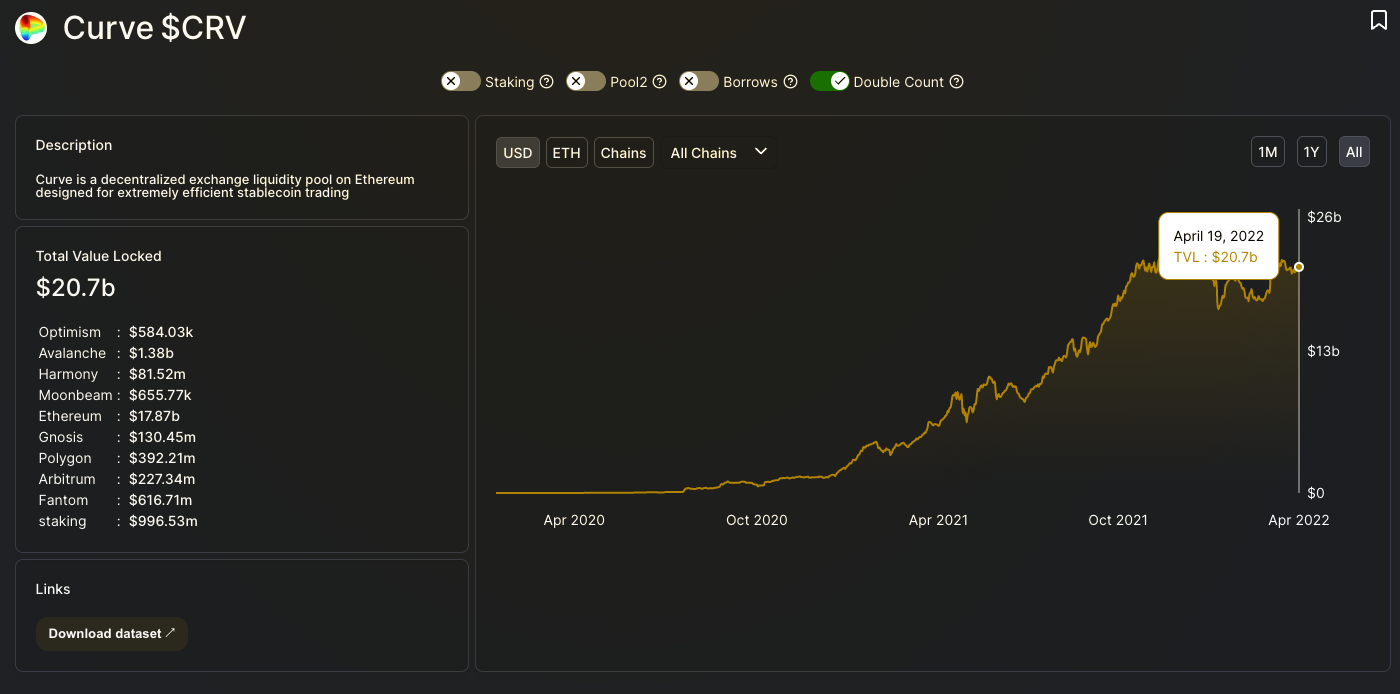 현재(22/04/19) 총 자산 규모가 가장 큰 DEX를 운영하고 있는 곳은 Curve가 되시겠다.
