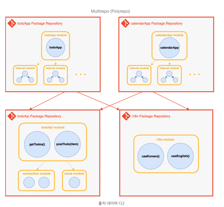모놀리식 구조의 한계는 모듈화를 통해 해결이 가능한데 이것이 멀티레포.