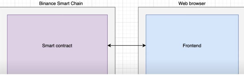 binance smart chain integration에서 실행되는 스마트 계약과 사용자의 웹 브라우저에서 실행되는 프런트엔드 구조